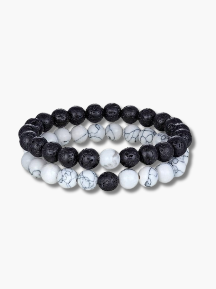 Designed with round black and white pearls, these bracelets for couple embody the harmony of opposites. These stones, with their soothing vibrations, help balance yin and yang energy, symbolizing partnership and complementarity between two individuals. With an elastic design, each bracelet fits comfortably on any wrist, guaranteeing a solid hold and long life. The contrasting shades of black and white pearls are a reminder that in light and shadow, in good times and bad, a couple remains bonded and fortified by their love. Whether it's an anniversary, Valentine's Day or a simple day to express your love, these bracelets are a tangible testimony to the commitment and passion shared. Celebrate your love in an authentic, timeless way with Couples Bead Bracelets. A touch of nature on your wrist, pure emotion in your heart.