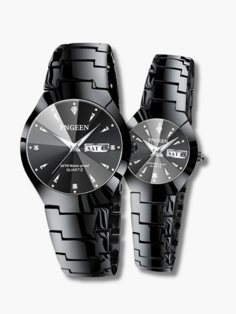 The union of luxury and contemporary design finds its most refined expression in our set of luxury watches for couples. Designed especially for duos who don't compromise on elegance and who are looking for accessories that are both modern and timeless, these watches set embody the very essence of refinement. The modern shapes and trendy details of these couple watches reflect today's aesthetic while retaining a classic touch, ensuring their relevance for years to come. Whether it's for a birthday, anniversary or any other special occasion, giving this set of luxury watches is a testament to your love and appreciation for your other half. Although radically modern, these watches are an elegant match for any outfit, from dressy to casual, making every moment an occasion to assert your impeccable taste. The promise of precision watchmaking combined with innovative design ensures that you not only get a fashionable accessory, but also a reliable and precise piece of engineering.