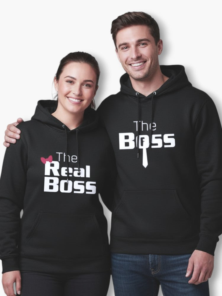 Discover our The Boss & The Real Boss Couple Hoodies, tailor-made for duos who like to play with convention while asserting their unique style